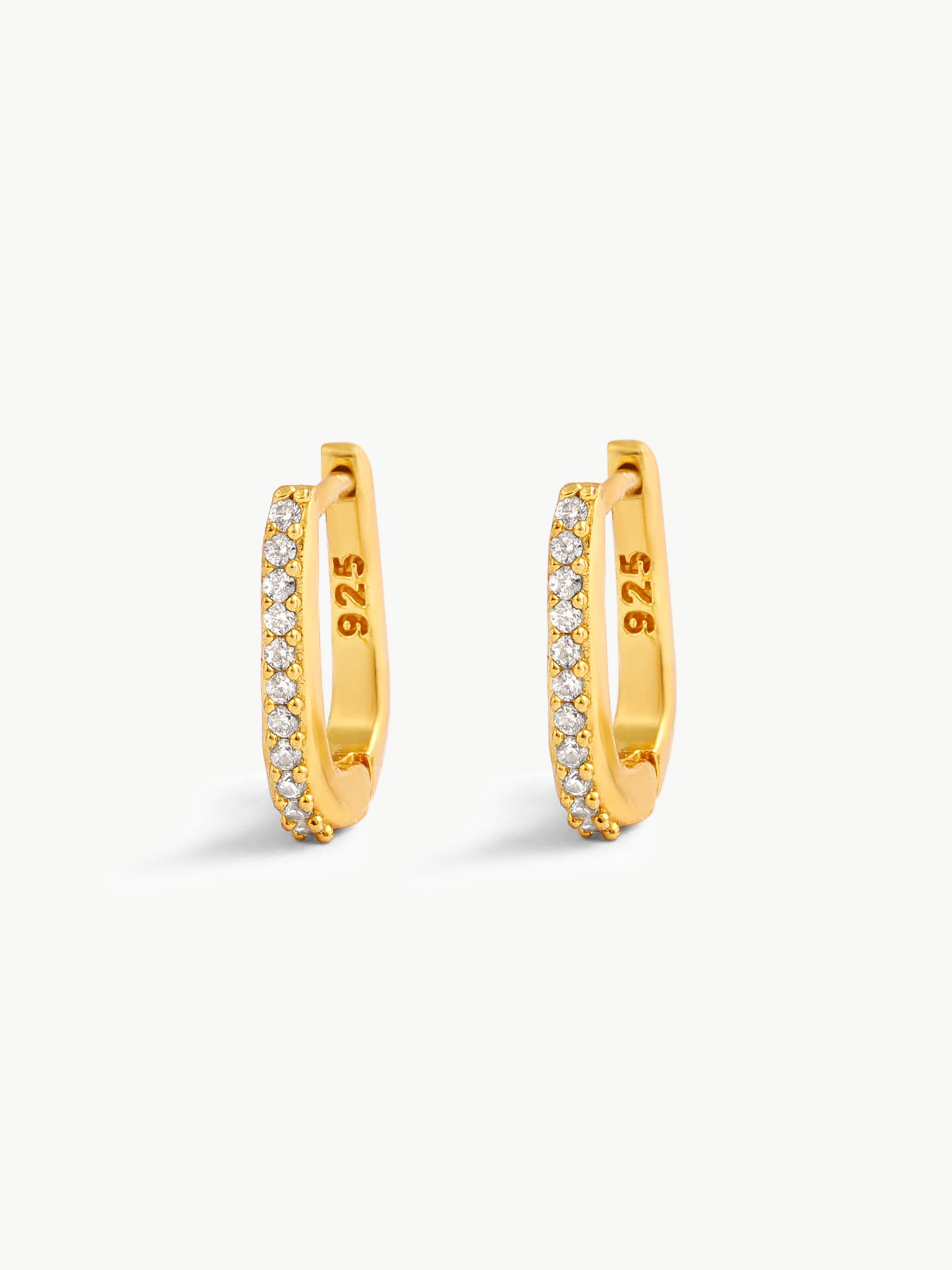 Handcrafted in 925 Sterling Silver, finished with a rich 18K gold polish, and lined with brilliant white AAAA zirconia stones, these huggies are your go-to for a touch of everyday elegance. ✨