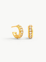Handcrafted in 925 Sterling Silver, finished with a rich 18K gold polish, and encrusted with brilliant white AAAA zirconia stones, these huggies hug your ear perfectly for a sleek, comfortable fit that elevates any look. ✨