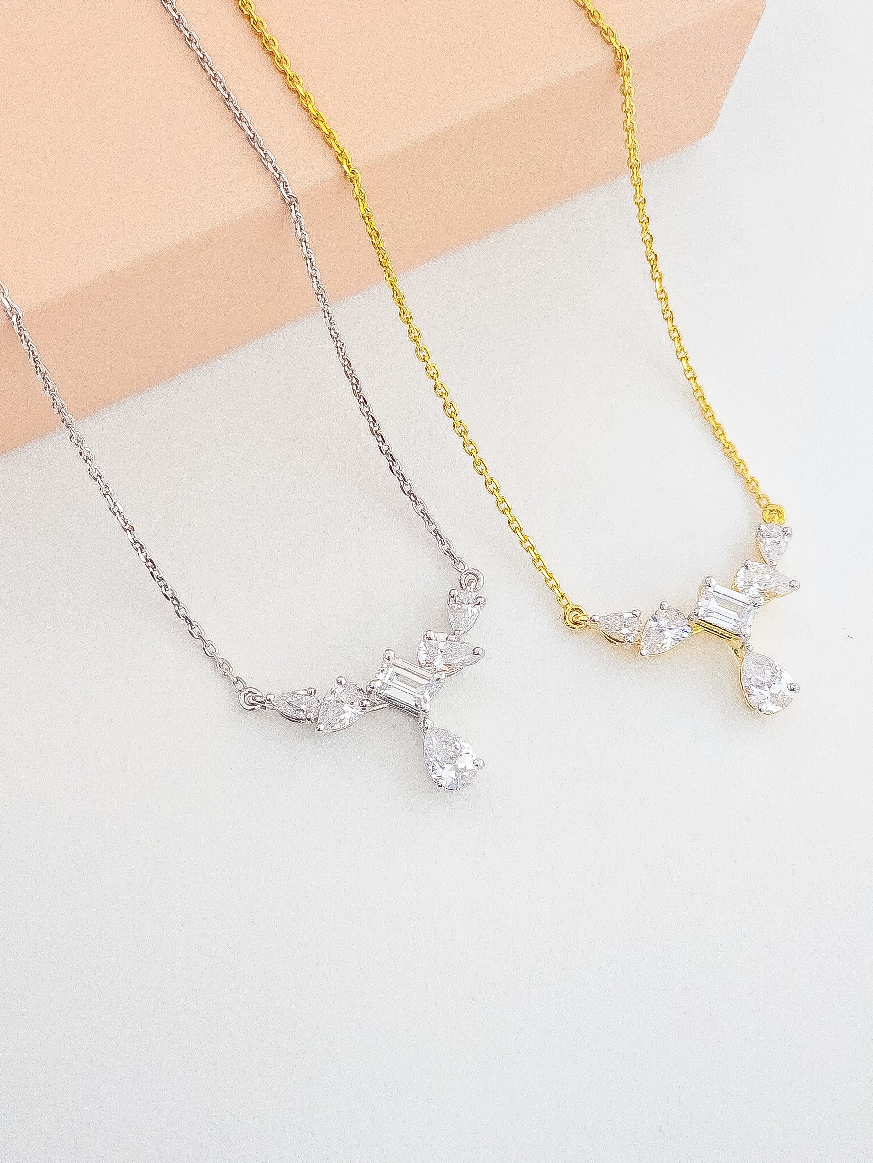 Elevate your everyday style with the Twilight Spark Pendant in Gold, crafted in genuine 925 sterling silver and luxuriously gold plated for a rich finish. Featuring a stunning arrangement of pear-shaped and baguette-cut cubic zirconia, this pendant delivers brilliance and grace in every angle.