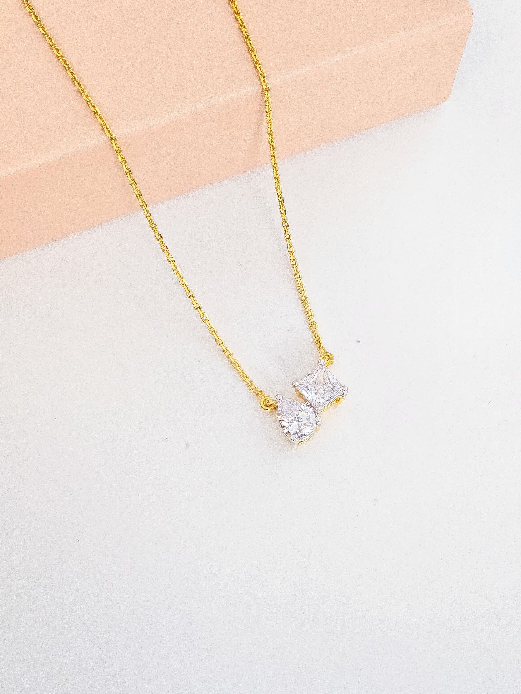 Inspired by the iconic French “Toi et Moi” style, meaning “You and Me”, this pendant celebrates love, unity, and individuality. Crafted from hallmarked 925 sterling silver, the design features a dazzling pear-cut cubic zirconia paired with a sleek princess-cut CZ, symbolizing two distinct styles coming together in harmony.