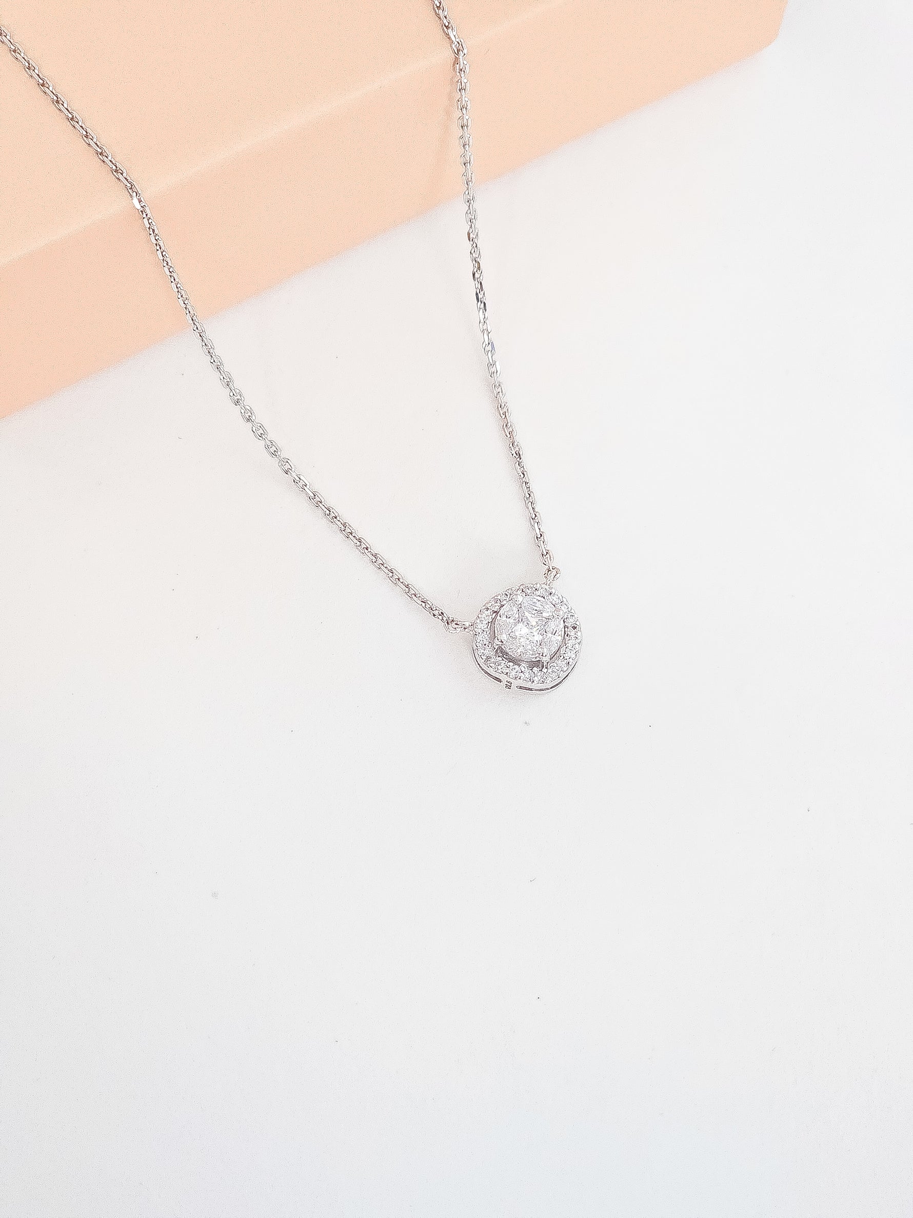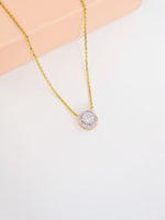 The Starlight Round Pendant is a timeless halo-style pendant crafted in hallmarked 925 sterling silver, available in both 18K gold plated and rhodium silver finish. Featuring a dazzling round-cut cubic zirconia stone surrounded by a halo of smaller pavé CZs, this pendant creates maximum sparkle with a minimal, elegant design. Lightweight, hypoallergenic, and perfect for everyday wear, office styling, or gifting under ₹3000.
