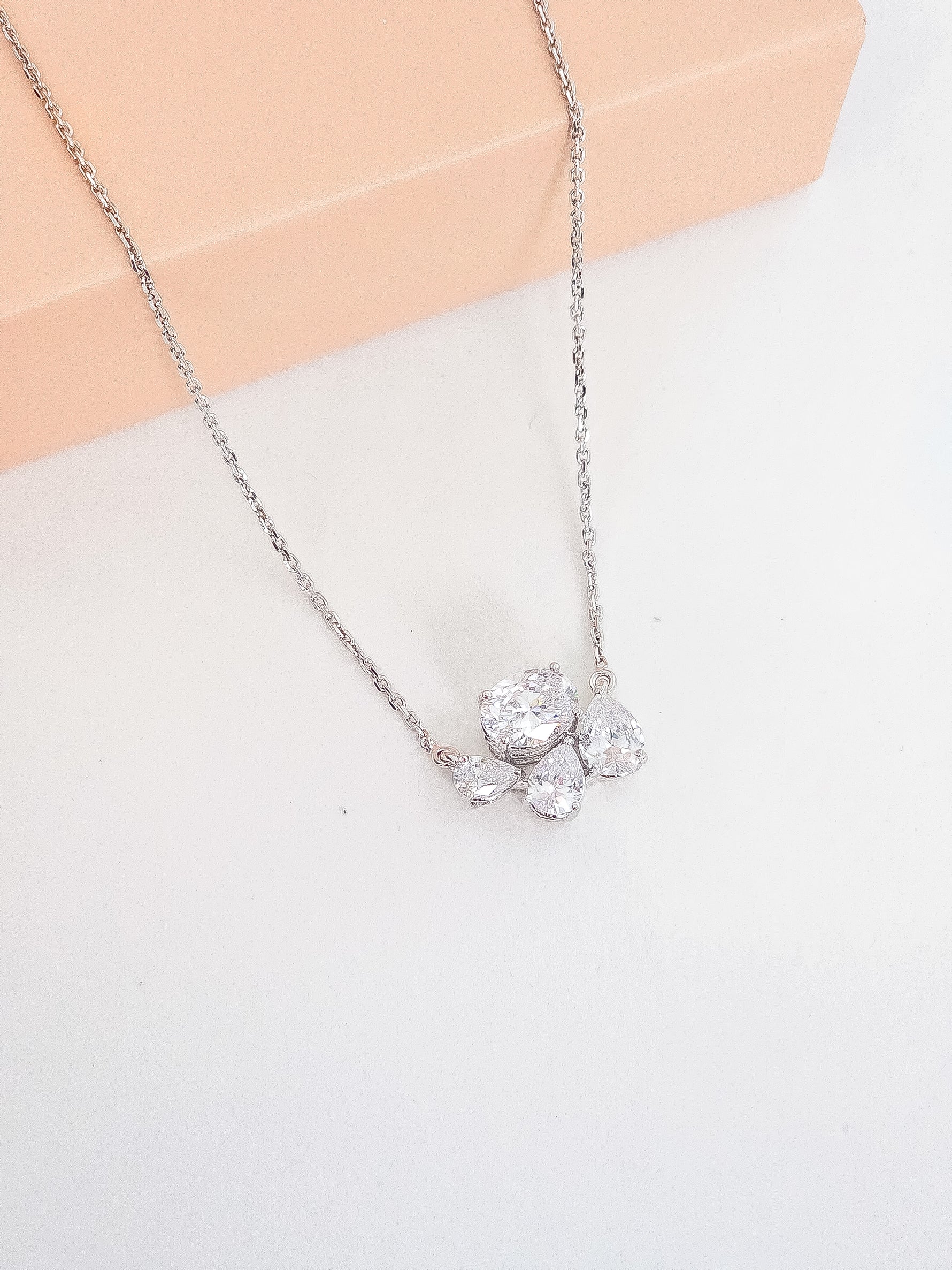 Add refined sparkle to your everyday style with the Celeste Cluster Pendant, crafted from hallmarked 925 sterling silver. The pendant features a stunning arrangement of round and pear-shaped cubic zirconia stones, creating a radiant cluster design that catches the light beautifully.
